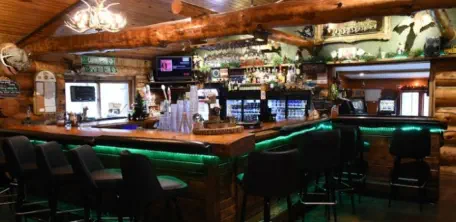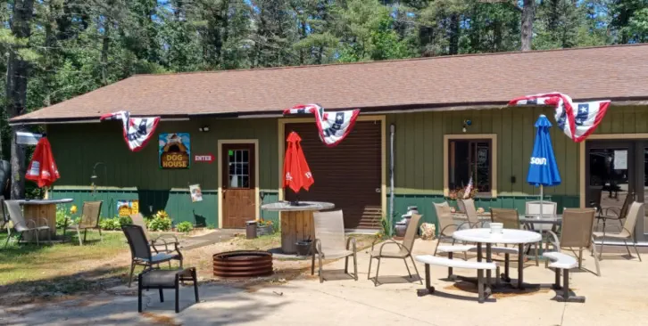 “The Dog House” bar with plenty of room inside and outside to eat, enjoy drinks,